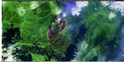 5. 俄羅斯:2020年7月17日俄羅斯位於西伯利亞的薩哈共和國,印象中冰天雪地的西伯利亞地區,連續好幾天出現動輒35℃的高溫,引發森林野火,燒毀逾1,000公頃的林地。西部濱臨黑海的港城則遭逢暴風雨侵襲,積水淹進20多棟民宅和兩條鐵路,道路交通中斷。西邊水鄉澤國,東邊西伯利亞地區則燒起森林野火,讓俄羅斯深陷水深火熱緊急狀態。2024年4月俄羅斯與哈薩克邊境遭遇數十年來最慘的洪災,異常融雪導致烏拉山 (Ural Mountains)和哈薩克創紀錄洪水,也是哈薩克80年來遭遇的最慘天災之一。2024年7月19日俄羅斯民眾在42℃陽光下,將蛋倒進平底鍋秒變熟,除俄羅斯幾乎整個歐洲近一周都籠罩在熱浪中。