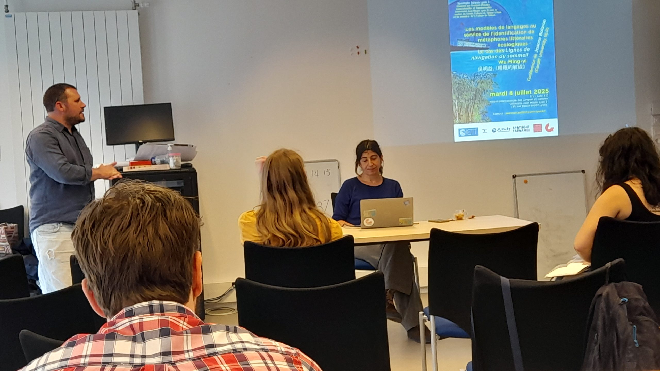有位來自Inalco學院的法籍學者Louis Lecailliez也來上課。他收集多部亞洲語言辭典,進行亞洲語言比較。Joanne Boisson老師在英國Cardiff大學從事研究工作,應邀到課堂上介紹她如何運用數位工具分析與研究吳明益作品。