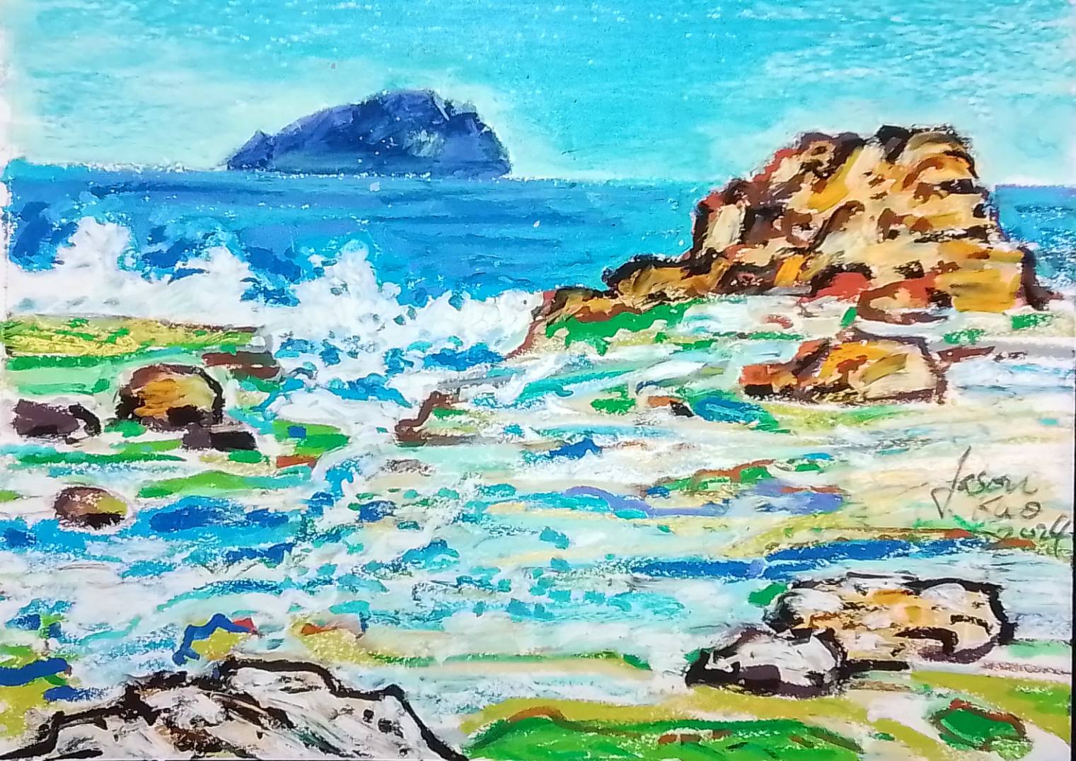 至今五十幾年來,我偏愛且長期大量的畫粉彩畫,更因其攜帶便利與作畫快速的特性,出國旅行時、上山下海時,總是慣用粉彩顏料繪畫。尤其是「油性」的粉彩,有油畫混色和覆蓋的優點,正中下懷,投我所愛。