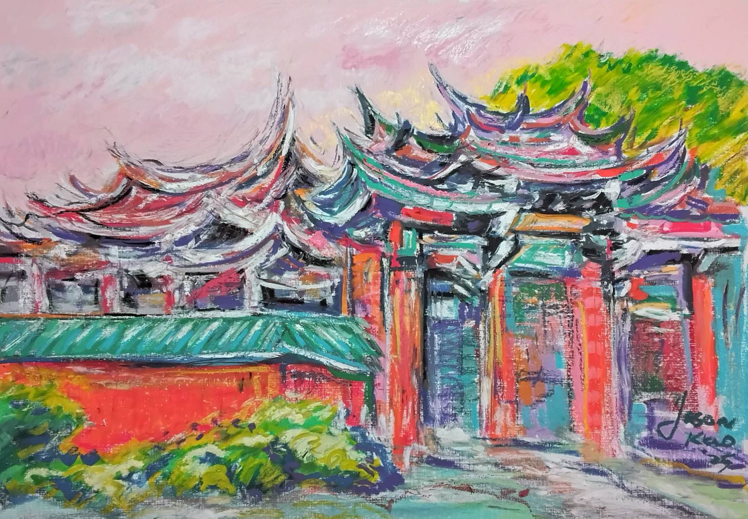 23年秋,我放鬆創作力道,選擇一些接地氣的台灣城鄉主題,運用一向偏愛的油性粉彩作畫於較小尺寸紙本上。