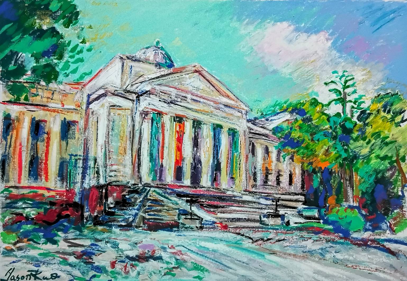我終於直面審視老台北的新面貌,進而得心應手。同時,不拘老建築主題,我一以貫之試探了幾種不同風格畫法:強烈的野獸派、朦朧的印象派、抒情的點描派……一番揮灑色彩,得意忘形之際,又累積了一批數量。經過整理統籌,將其統稱為:「老城新貌巡禮」,就在我的「雲端美術館」做個小主題的線上展覽。