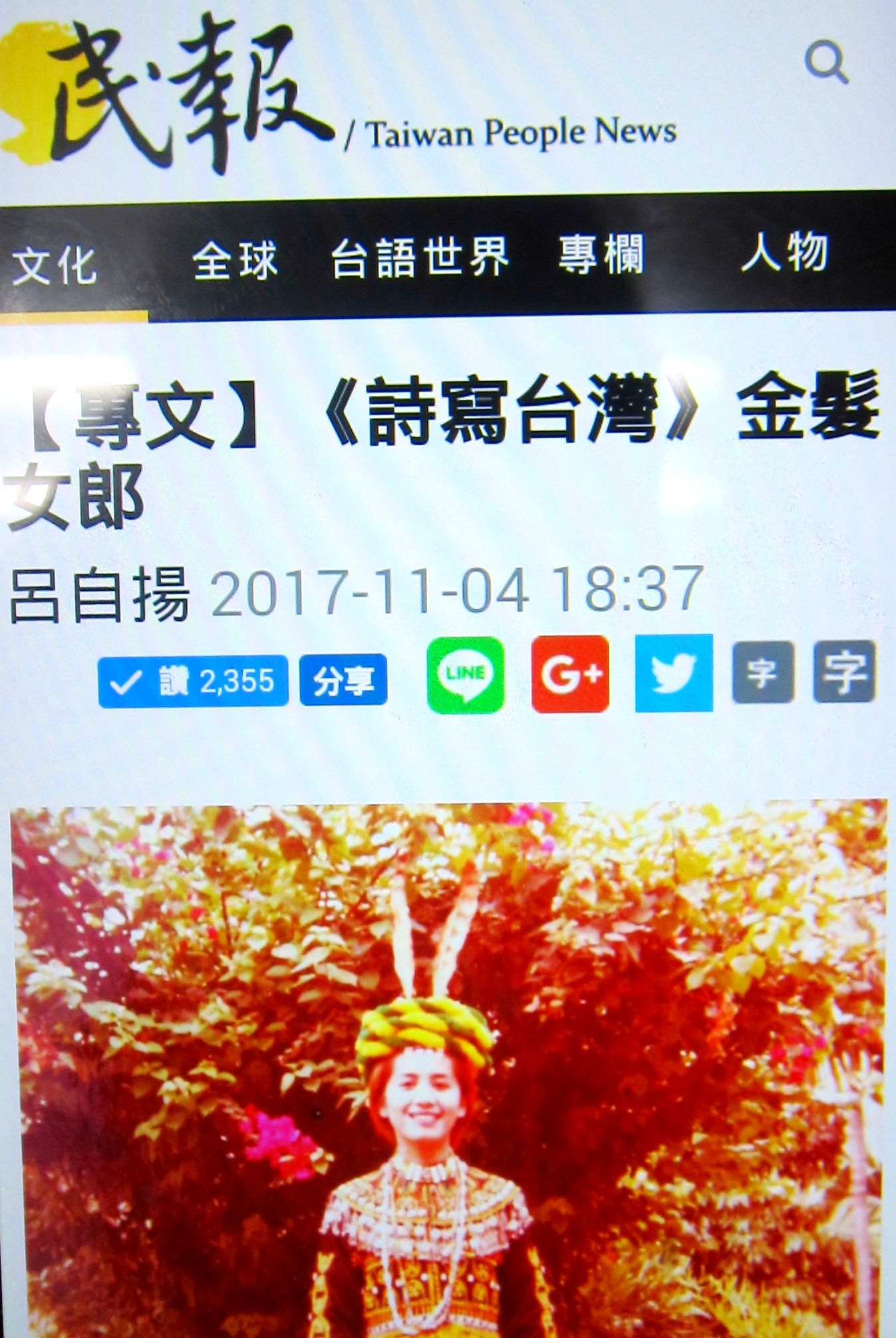 我正在深入歷史「詩寫台灣」,寫荷蘭血統的金髮女郎,也寫荷蘭時代〈熱蘭遮城〉〈赤崁樓〉的歷史詩文。