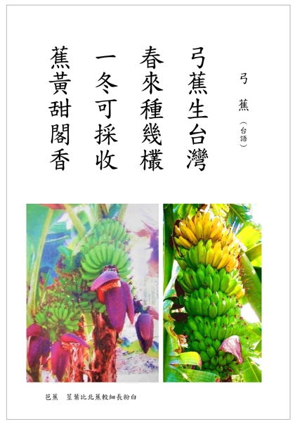 詩寫台灣的白話四句詩大多可台語吟唱,只少數句需改換部分字詞。我書中也有寫多首台語詩。