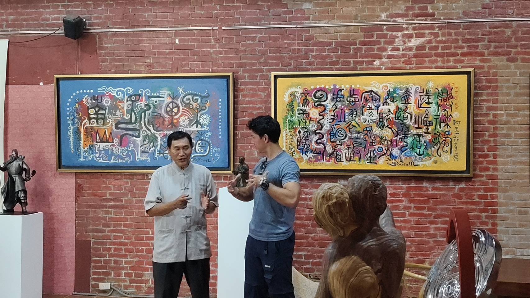 必紅演藝團隊此次特別走訪東門美術館歸仁的一館與二館,該場館由原農會穀倉改建而成,二館現正展出東海大學碩士畢業生作品展及一館台灣雕塑協會聯展。當日,由混血主持人 舞陽 與卓來成館長展開深度對談,回顧美術館一路走來的藝術發展與教育使命。