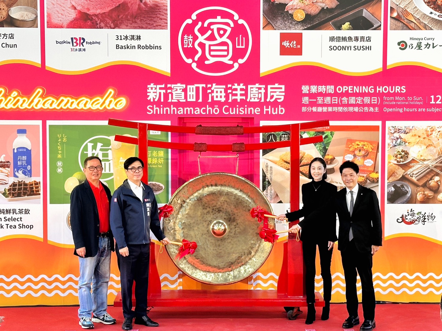 高雄市長陳其邁、國揚集團營運長侯嘉騏、佑神公司代表人南野雄介總經理、漢來國際物業管理顧問公司總經理陳依文、漢來美食董事長林淑婷、高雄區漁會理事長謝龍隱以及立委、議員等各界貴賓出席開幕儀式,一同見證這座融合近百年歷史文化與現代美食的嶄新地標,以敲鑼儀式象徵新濱町海洋廚房正式營運。高雄市政府表示,「新濱町海洋廚房」位於鼓山區鼓山漁港旁,其前身為承載著高雄漁業發展記憶的鼓山魚市場,如今在市府與民間企業的攜手擘劃下,巧妙融合了歷史文化與現代美食,蛻變為坐擁無敵海景的複合式場域。敲響的鑼聲,不僅宣告「新濱町海洋廚房」的正式啟航,商場網羅海外首店、全臺獨家及知名品牌等15家餐飲業者,更象徵著高雄在城市發展進程中,再添一顆閃耀的明珠。
