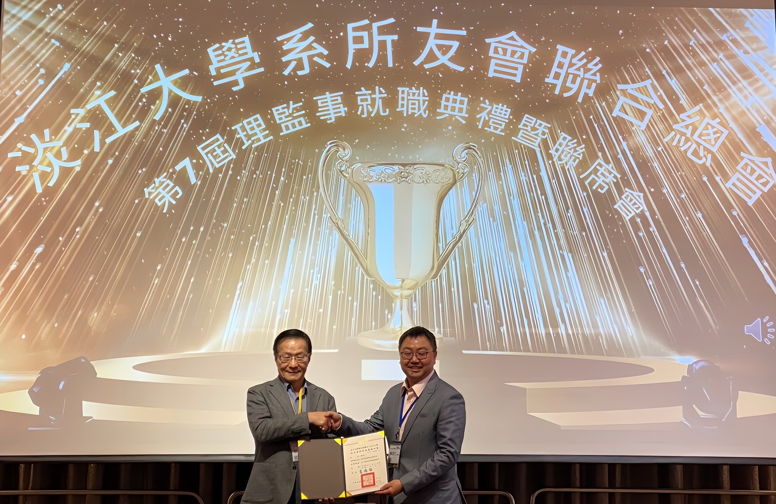 總會長蘇志仁強調,淡江有超過31萬名校友,這麼大的團體凝聚最需要的是「溫度」。他特別為每位理事、監事細心設計了個人化的總會名片,並在典禮中敦請三位副校長逐一頒發聘書,期望各系所菁英校友在未來攜手合作,共同推動學校與總會的繁榮發展。同時,每位校友和師長在會後收到了即時印製的獨照與大合照,滿滿的淡江人情溫度,讓大家永遠銘記這值得紀念的日子,一同繼續為淡江和國家社會做出努力和貢獻。
