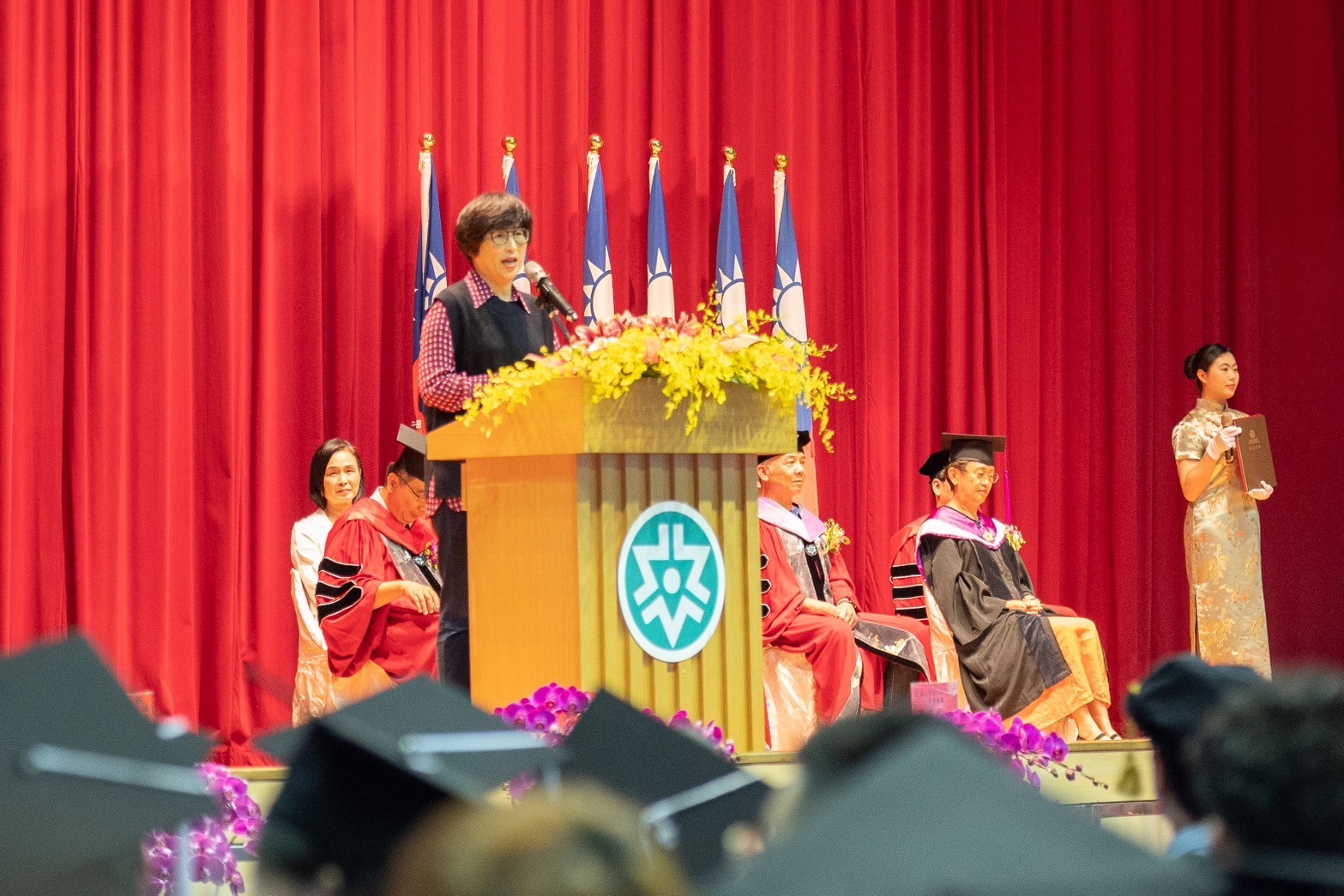 本次典禮特別邀請財團法人臺北市文化基金會松山文創園區陳玉秀總監進行專題演講;她以「是限制,是挑戰,也是機會」為題,以自身成長經歷勉勵學生,要擁有開闊的胸襟來擁抱世界、珍惜家鄉的價值並回饋社會;同時也要勇於面對人生道路上的各種挑戰和機會,在有限資源中激發創意潛能。