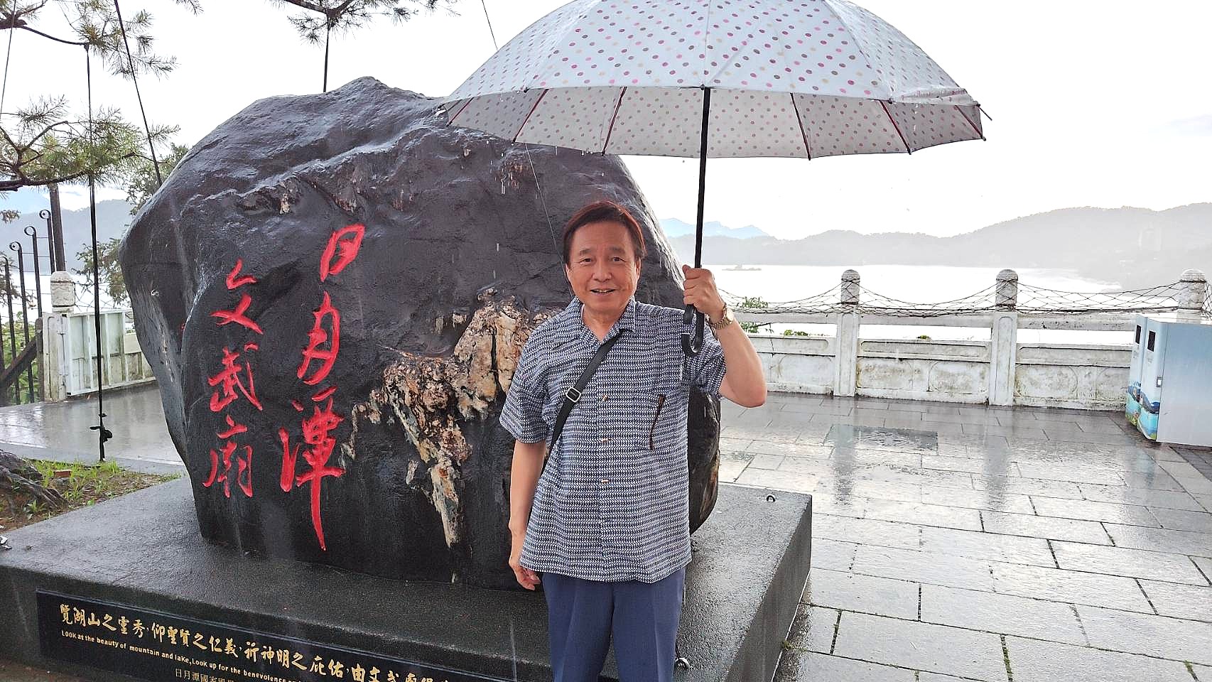 離台前日,知名的台灣鄉土文學作家,也是田野調查霧社事變的第一人,鄧向揚好友,得悉我回魚池,中午冒雨接我共餐後,又開車環湖共賞雨中的日月潭。