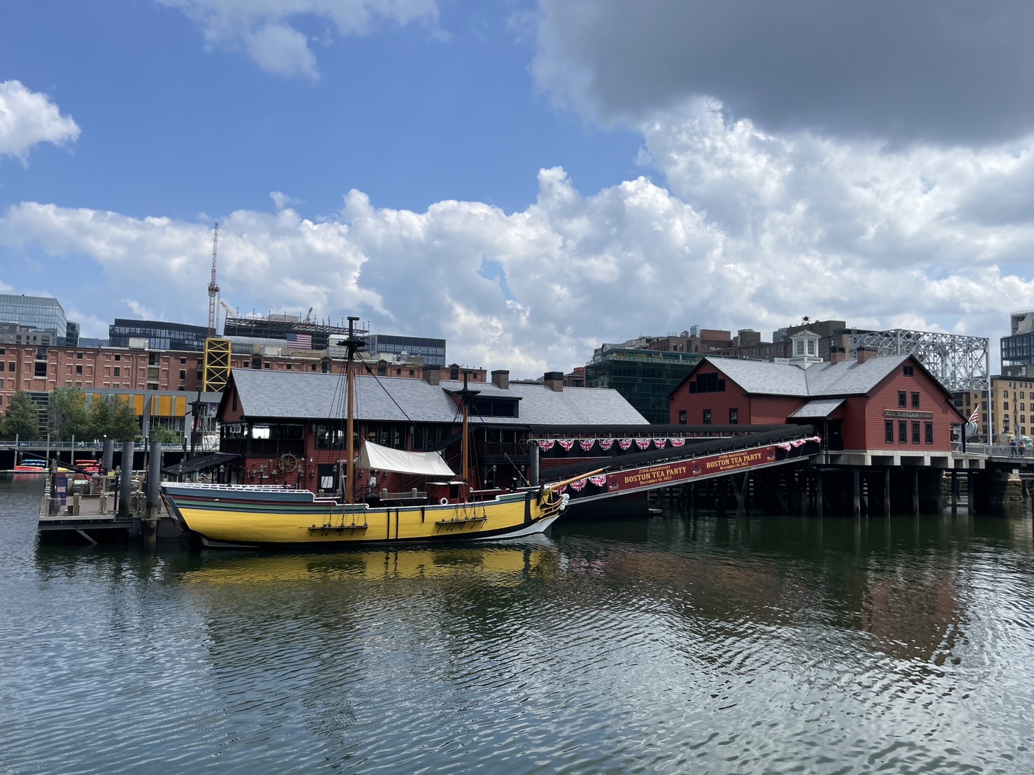 散步在整頓徦真姝的波士頓碼頭區,會當看著2012年6月重新設計,浮在水面上,展示來予人參觀的,1773年12月16在遮發生的「波士頓茶會」(Boston Tea Party)。這個歷史性的事件是波士頓當時一群有自由思想的住民,宣示「無代表免納稅」(No taxation without representation)的理念,用行動公開表達對英國在北美殖民地「無代表卻抽稅」政策的不滿和反抗,是強力喚起北美殖民地人民勇敢邁向獨立建國,第一個上重要的大規模反抗事件。