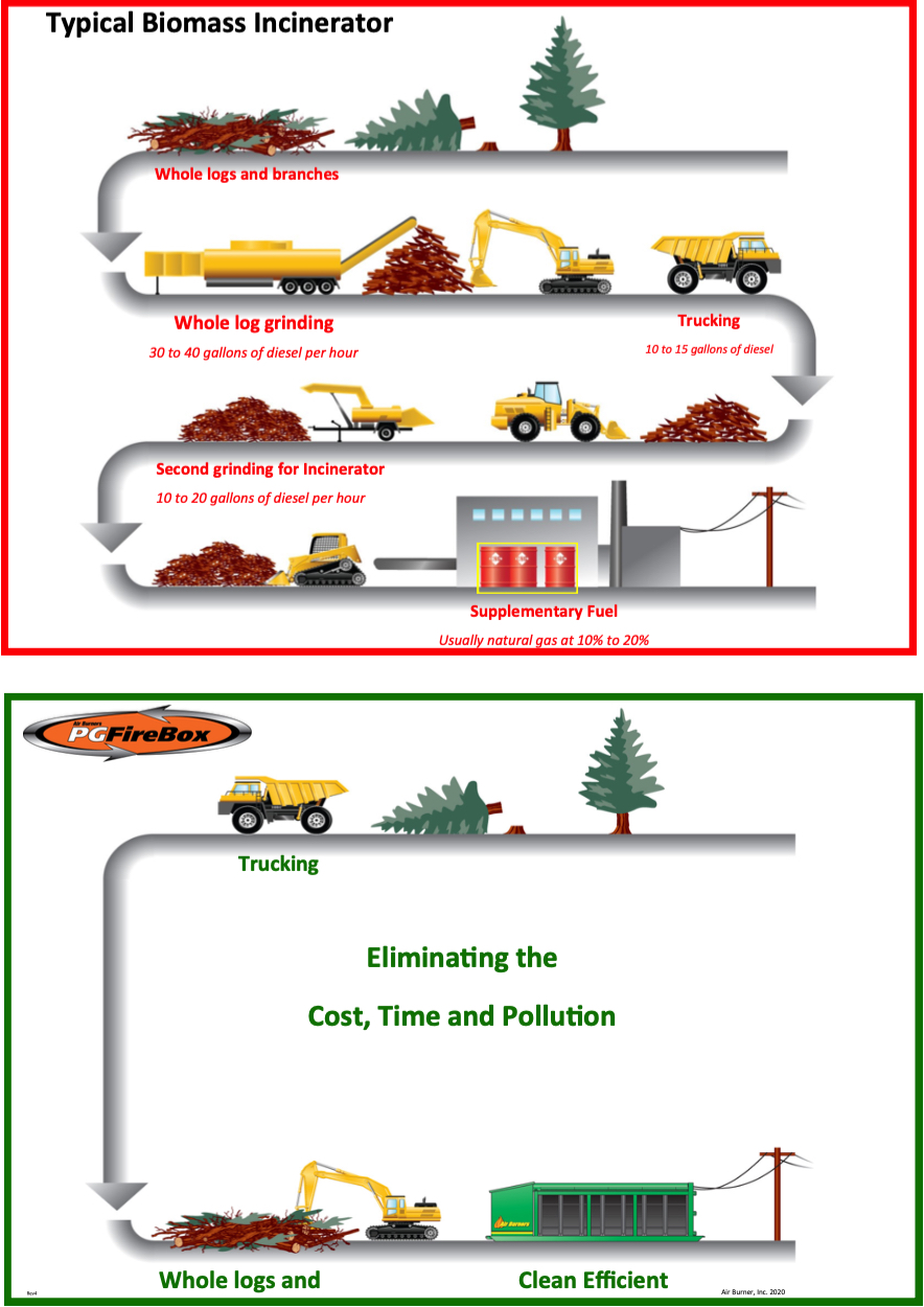 1)減少98%的木材浪費,每日可處理成千上萬噸的農林木廢棄物,將之轉為潔淨的天然灰燼,轉化酸化的土壤,成為肥沃的土壤(請看美國農業部的宣導影片)。