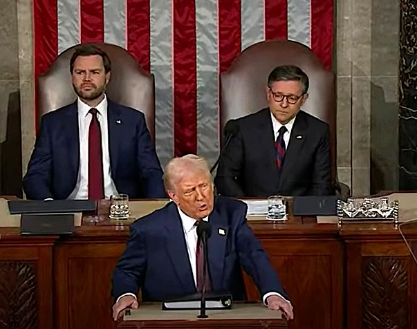 強人哲學與強權哲學不同,川普是強人哲學,習近平是強權哲學。圖為川普發表國情咨文表示,僅在過去幾周,美國就獲得了1.7兆美元的新投資。