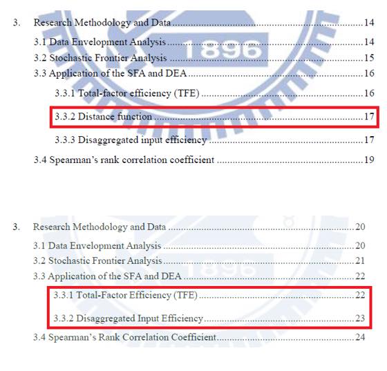 附圖四上方是舊版的目錄,下方是新版。舊版的「3.3.2 Distance function」在新版看不到。