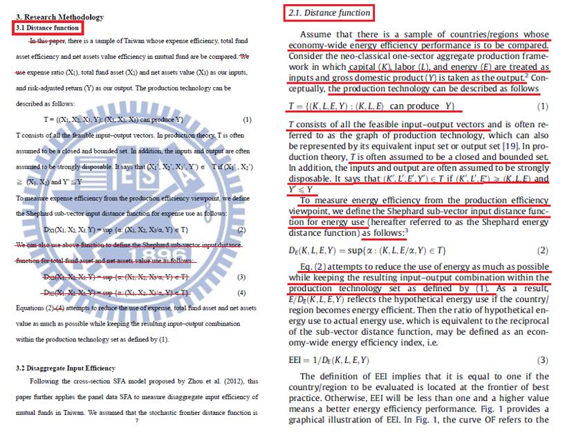 附圖六截自凌濤的舊版論文,第17頁就是他刪除的段落(3.3.2 Distance function)。