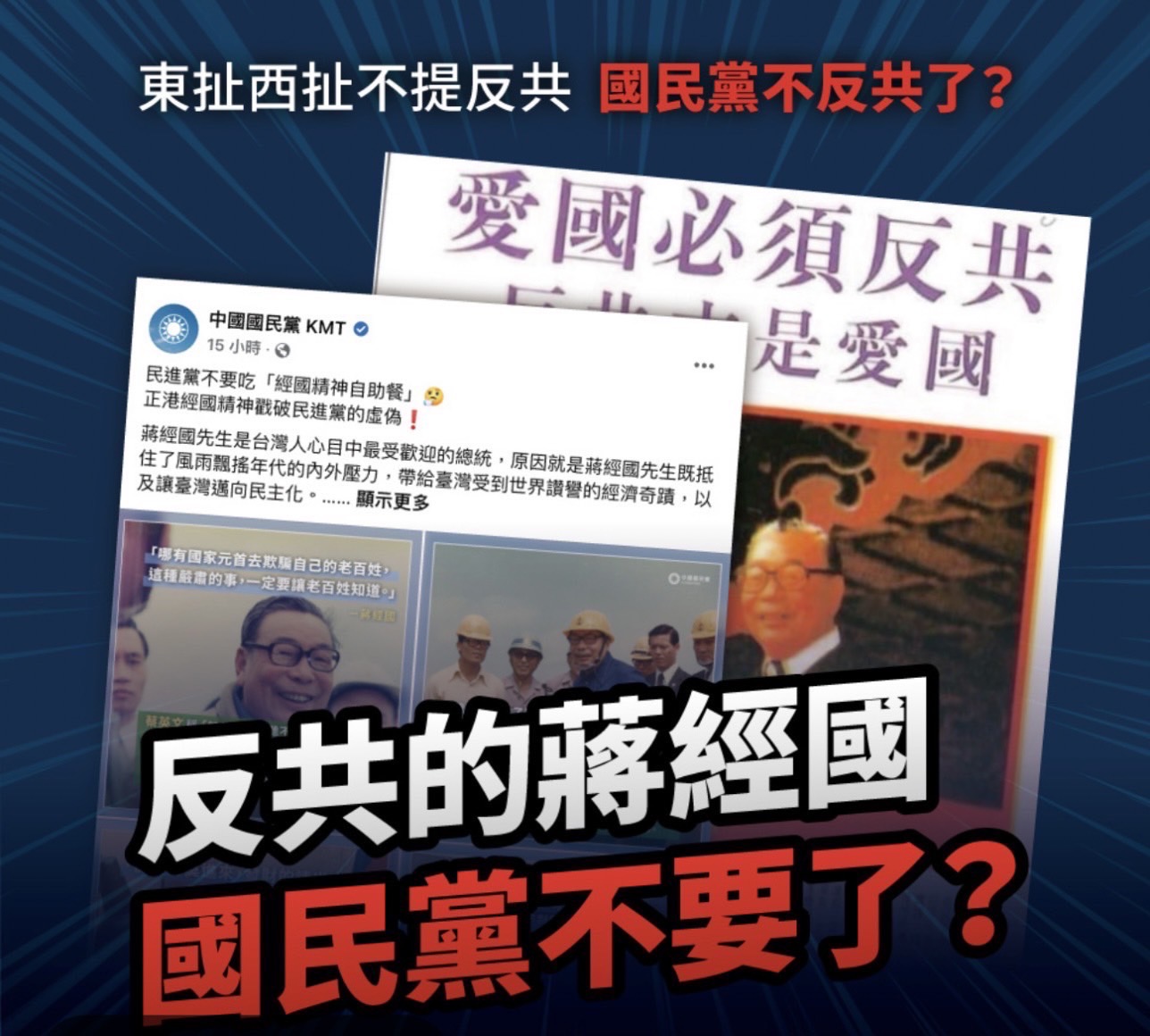 我們堅持反共,是反對邪惡的共產主義;反對共產黨暴政統治下的不民主、不自由、無人權;反對共產黨以火箭、戰機、船艦騷擾、威脅台灣領空與領海。我們尤其反對國民黨自己無能,卻一心企圖「擁中共以自重」;我們更反對國民黨高官們,不願去中國當中國人,卻在台灣作亂生事,企圖迫使台灣人淪為共產黨極權迫害下的中國人。