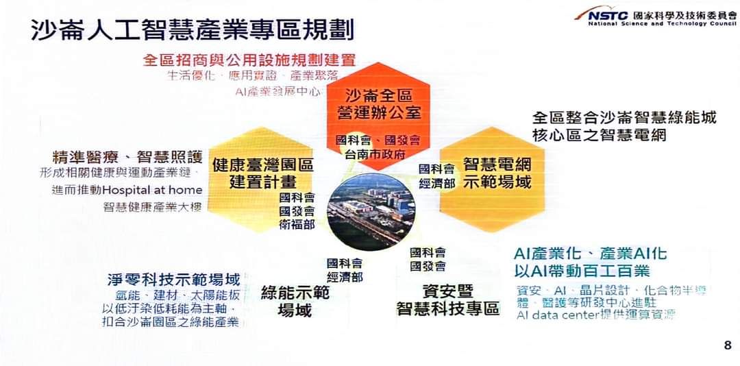 沙崙科學城坐落在台南高鐵站區,居大眾運輸交通的節點,以台南交大為發軔,而後加入綠能、智慧、資安、健康與醫療等重大建設項目,復有工研院、國研院、中研院、交大與成大,逐漸形成一個學研的新聚落。
