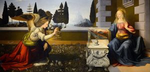 15世紀文藝復興來臨,《聖告》之類的題材成為藝術家常見的宗教畫作品;描繪天使加百列告知聖母瑪利亞將懷上帝之子耶穌的故事。現藏於義大利烏菲茲美術館,達文西《聖母領報》是其代表作,大天使加百利(Gabriel)帶著象徵純潔的百合,以虔敬而優雅的姿態半跪在童貞的瑪利亞面前,舉起右手賜福給她,並告知她孕育聖胎的使命。