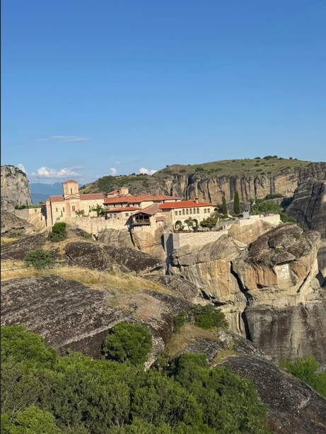 建於14~15世紀的「聖三一修道院」,它是建在地勢嚴峻的岩柱上,遺世孤立,卻有著可以欣賞山下卡蘭巴卡小鎮全景的絕佳視野。這裡同時也是1981年的007電影 「For Your Eyes Only」(最高機密)的拍攝場景。