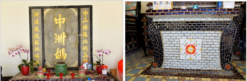 「中洲媽」小祠為磚牆洗石子、一落一拜亭北式宮廟建築,正牆神位碑洗石子,再以黑色小磁磚分割成三欄。中欄為「中洲媽」及四隻蝙蝠,泥塑漆金,左右欄為聯對,左聯曰「中正不得功施萬類」,右聯曰「洲溪通流福地勘安」,亦皆為泥塑漆金。聯對以「中」、「洲」冠首,點明主祀神明為「中洲媽」。