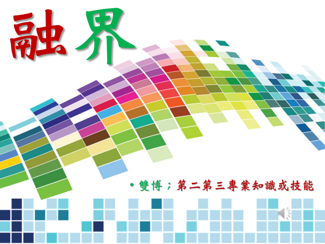 怎麼融界呢?當你是一個雙博士你的腦袋,就沒有了這兩個雙博士專業知識的邊界,你就是在融界,或者你擁有第二和第三的專業知識或技能在你的腦袋裡頭,事實上都是沒有邊界的,那這樣創意無窮!