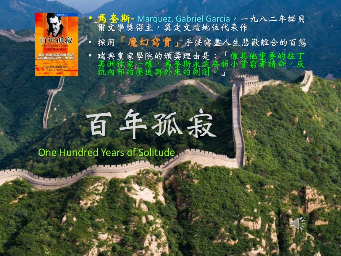 而馬奎斯告訴你 那種孤寂是到了一百年,甚至有些到千年萬年。那種寂寞是很難堪的!