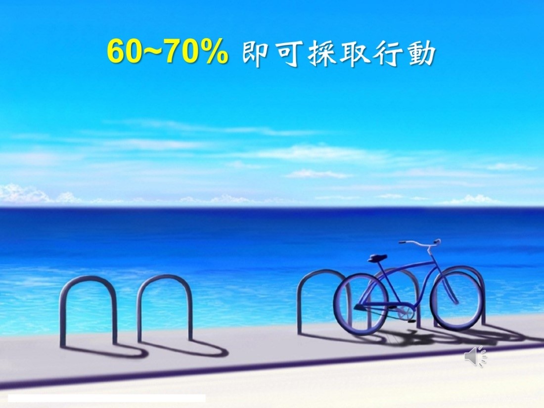 在這競爭激烈的環境裡頭,你不可能所有事情都是100%掌握的,你只有百分六十到七十的把握度,你即可以採取行動。