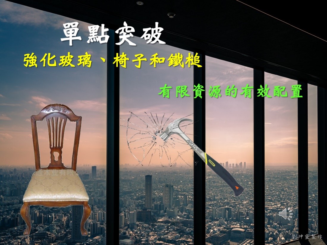 這時候你唯一能夠做一件事情就是拿一根錘子,用最尖端的地方,集中所有的力量去打它、去撞它去搥它、這時候它立即就破掉了!