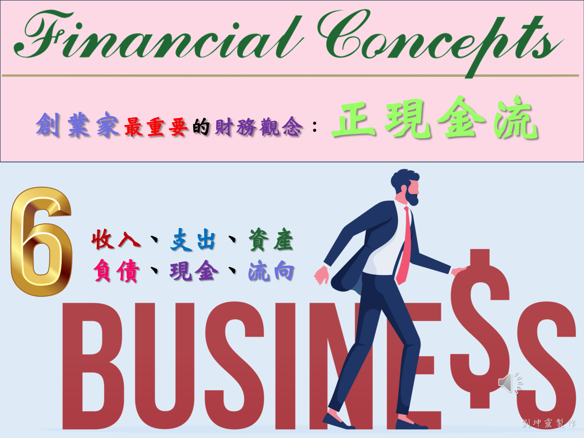 創業家老闆在商言商,千萬要有正確的財務概念《Financial Concepts》,其中最重要的六個概念就是:《收入》、《支出》、《資產》、《負債》、《現金》、《流向》