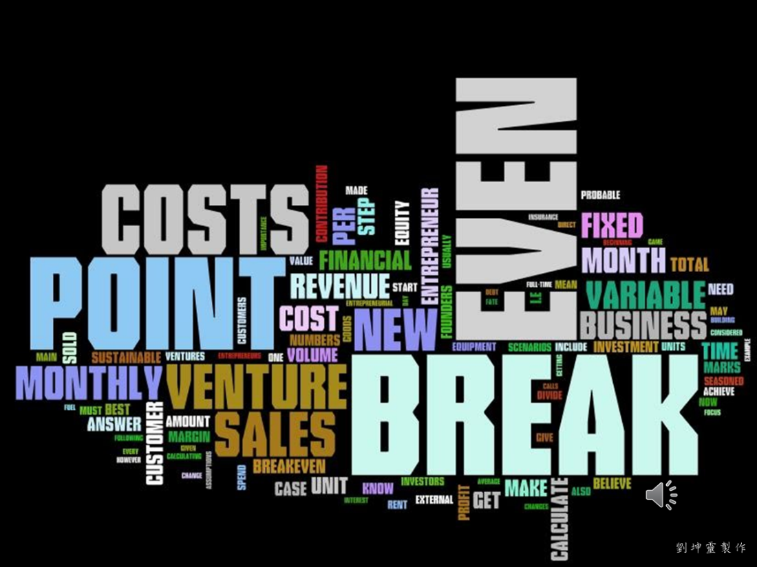 這一頁其中最大的兩個字是,《BREAK EVEN》也就是《損益兩平》!