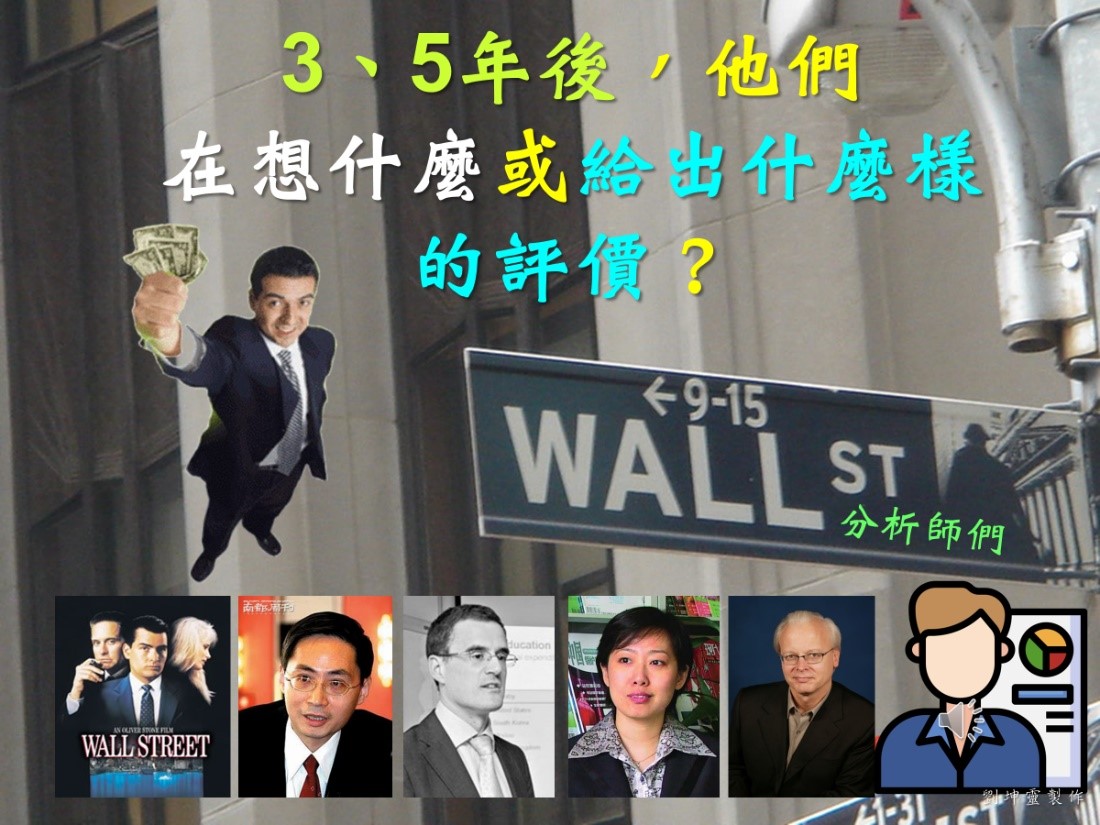 所以分析師是我們在做風險投資更早前的三到五年之前在想的事,最後,他們在你上市之後會給出什麼樣的評價?或者,他們在想什麼?你公司市值什麼?這非常重要你必須事先去模擬,去想像!