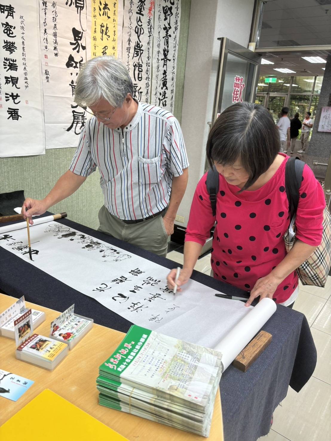昨天帶了個人作品前往會場補掛,也順便幫忙佈置場地。趁機細細欣賞了社友們的參展作品,深感大家的創作水平普遍提升不少。手癢難耐,看到來賓簽名紙前有空白,社長同意我在上面即興加畫幾筆,為展覽增色。於是畫了此圖,歡迎大家蒞臨觀賞。