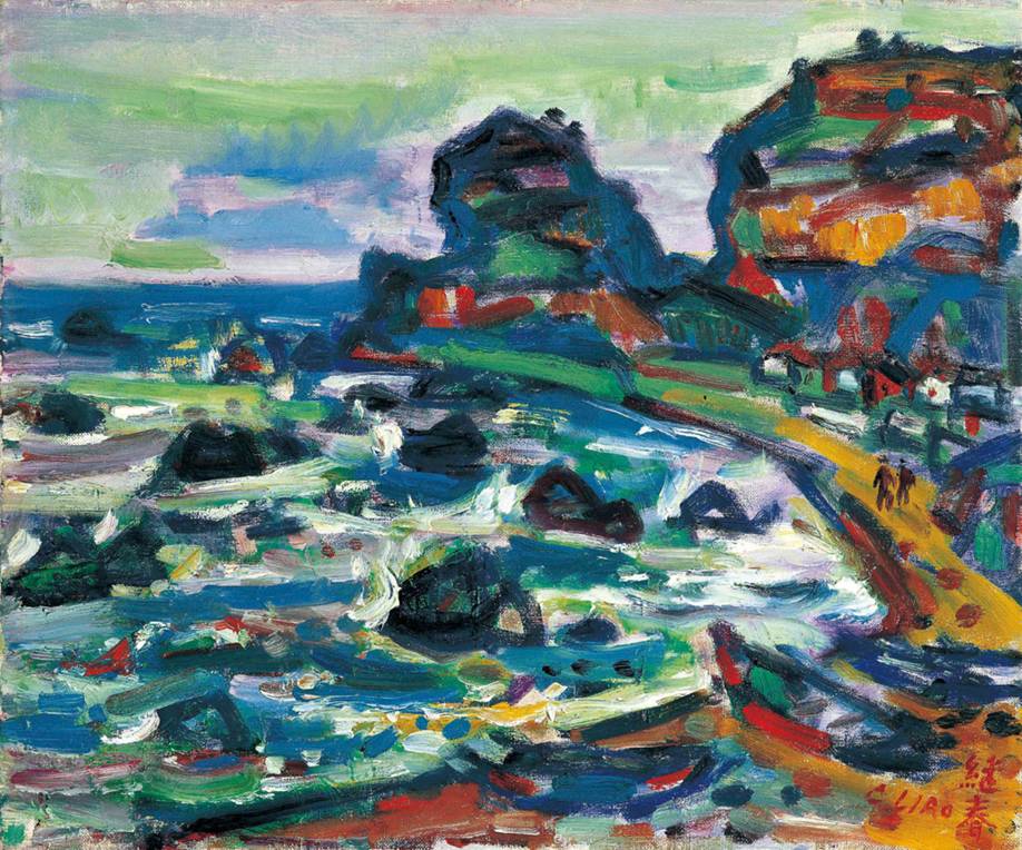 對於色彩與造型的運用,廖繼春有其看法,他曾說:「我利用簡潔強烈的色彩,以對比和強調來賦予更多色感,同時在線條的構成中注意造形趣味 。不是寫某一個時間內的印象 ,而是把想表現的色彩表現出來。」蒐尋終身之作,北海岸野柳港的異形奇岩、漁村風情,無疑成為他一生為數不多的表現主題,大放異彩。攤開畫冊可見畫中有高低起伏的山勢,有造型迥異的岩石,有港內漁船掀起的浪花,點綴著漁村屋舍,諸多吉光亮彩交織成一闕色彩的詩篇,造就色彩大師的冠冕。