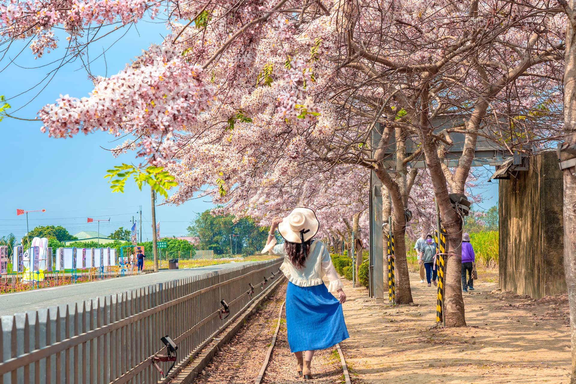 西港金砂里花旗木花期預計3月下旬開始,今年活動名稱為「蛇燦生花‧旗遊金砂」,西港花旗木林遠近馳名,粉紅色的花旗木沿著U型步道盛開,每年均吸引大量遊客前來拍照打卡。