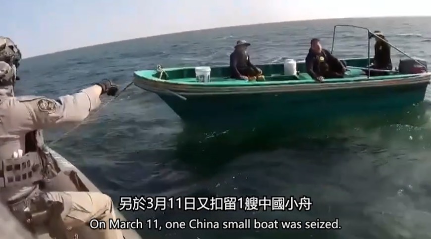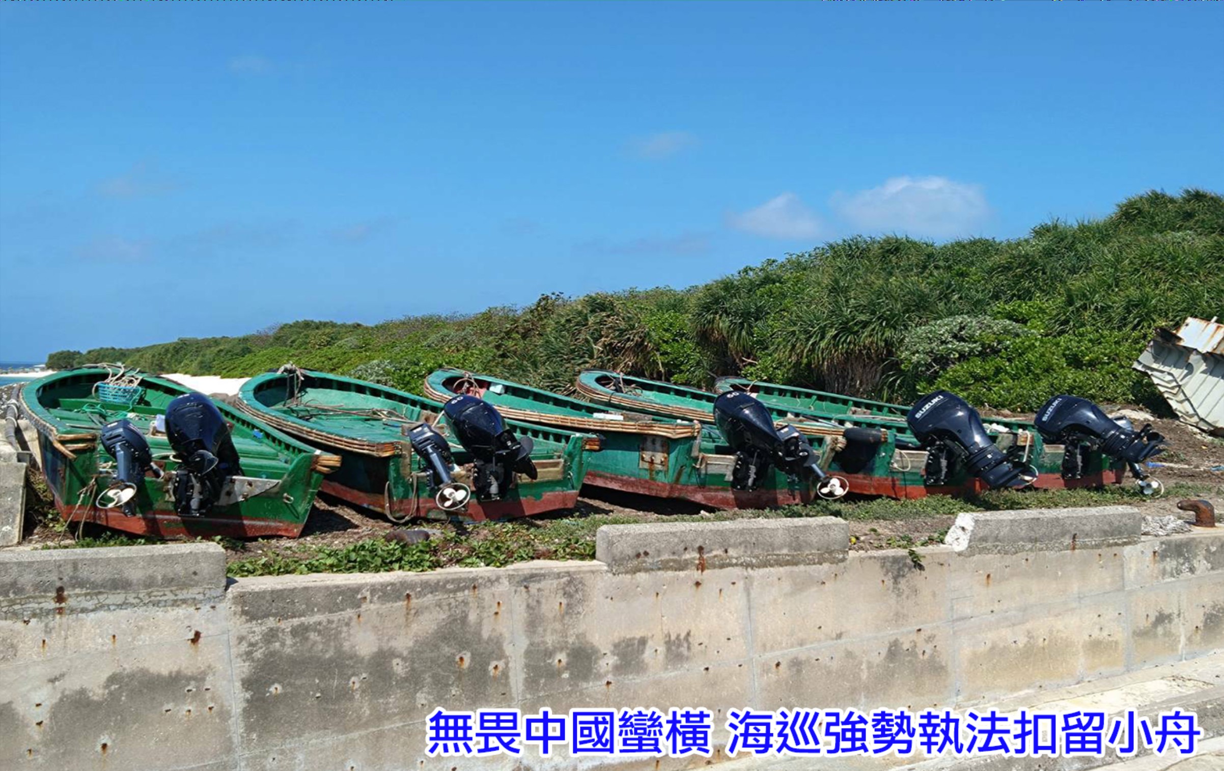 海巡又指,2月26日海巡署另發動東沙海域擴大威力掃蕩專案勤務,強勢攔停登檢中國「粵饒漁23588」漁船,期間2艘海警船航入我限制水域干擾我方執法,高雄艦及巡護七號船立即阻擋海警船,並依法查扣5艘小舟;本(3)月11日再度扣留1艘中國小舟,期間海警船仍嘗試干擾我方執法均告失敗,並遭海巡艦艇阻擋驅離至限制水域外。