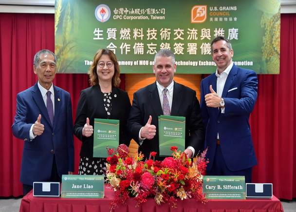 今日的開幕儀式,在行政院秘書長龔明鑫、美國在台協會農業組組長Erich Kuss共同見證下,由美國穀物協會副總裁 Cary Sifferath與台灣中油董事長李順欽代表雙方啟動合作儀式,雙方也在昨日由美國穀物協會副總裁 Cary Sifferath與台灣中油副總經理廖惠貞代表簽署生質燃料技術交流與推廣合作備忘錄,未來不僅將共享生質燃料減碳的技術、研究、調查、數據,也將積極成立工作坊,並辦理座談會、技術培訓、考察、試驗計畫等,為台灣交通燃料的能源轉型,發展酒精汽油、永續航空燃料的理論與實踐,奠定扎實基礎。