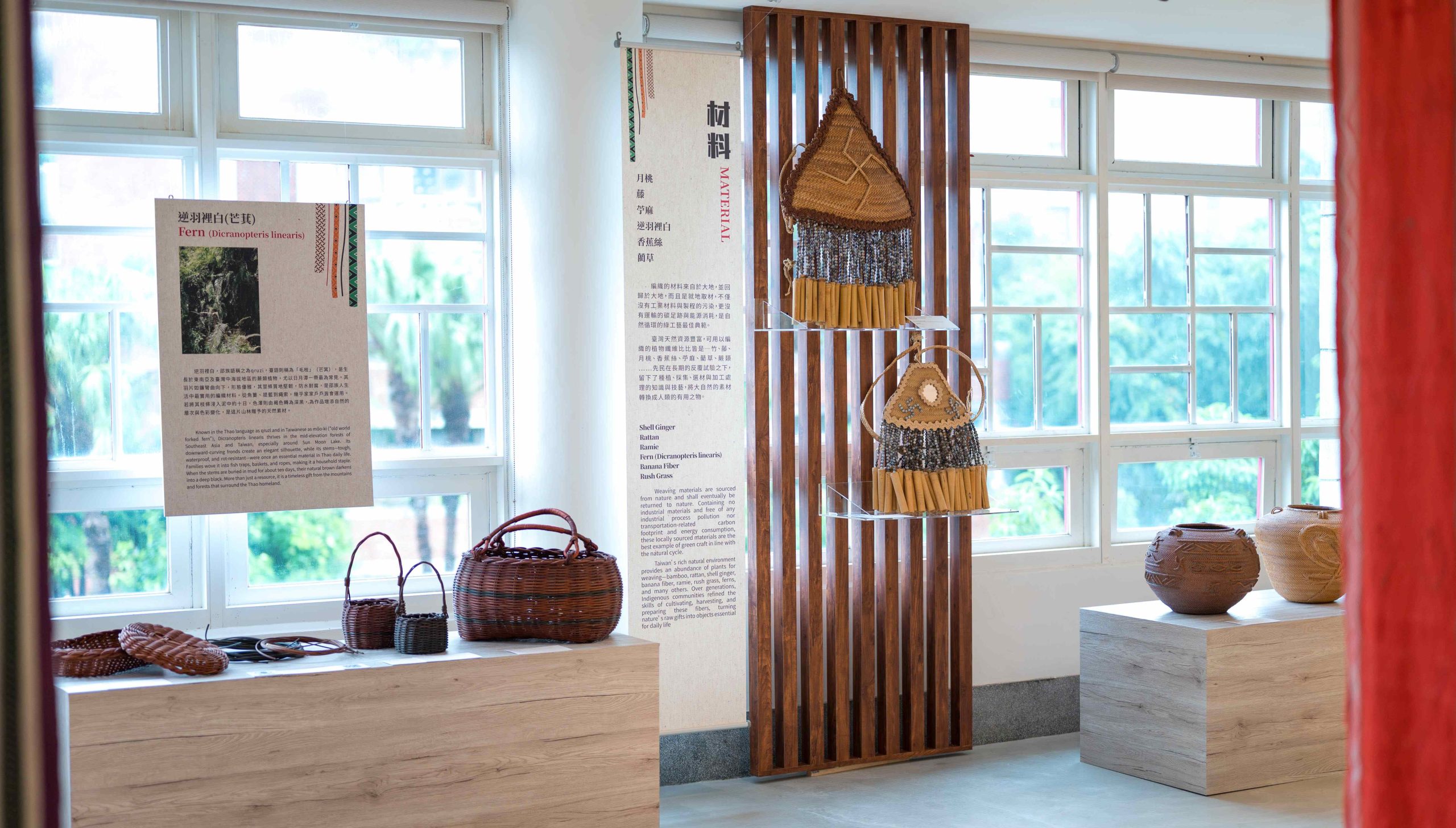 展覽以「材料」、「工具」、「織品」、「編器」等四大單元先帶領觀者依循工序歷程認識編織工藝的核心價值,並在最後的「演繹」單元中,呈現原民編織藝術的啟發與轉化,不同於當代藝術家取材現成的便利,大多原住民的編織材料至今仍仰賴親手採集或栽植,並自製工具,以「心手合一」的專注精神完成作品,映照出工藝與自然、社會、信仰間緊密交織的關係。這樣的精神正呼應工藝中心推動的「漫活SLOHAS_是樂活事」主軸,強調在地思維融合慢活(SLOW)與樂活(LOHAS)的概念,並涵蓋簡單(Simplicity)、生活型態(Lifestyle)、原創(Originality)、健康(Health)、美學(Aesthetics)及永續(Sustainability)等六大核心價值,由傳統工藝的延續至當代演繹,展現從「簡單」到「永續」的循環善藝,激盪出工藝文化累積所孕育的創意漣漪。