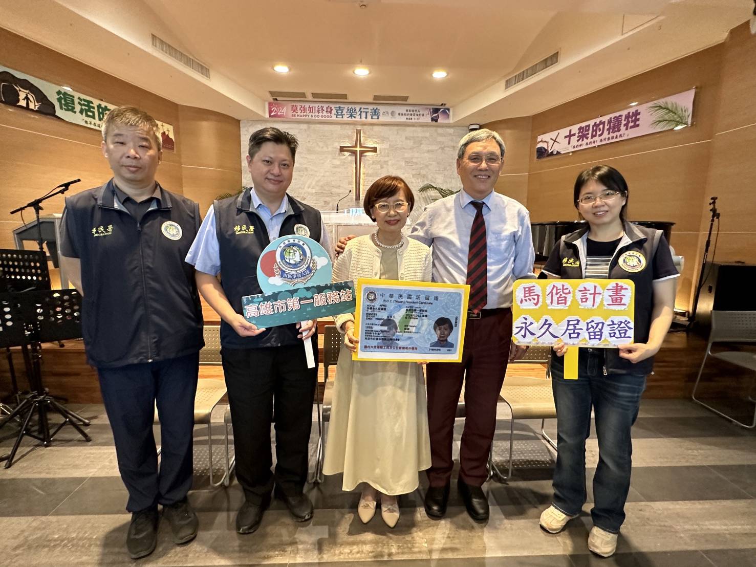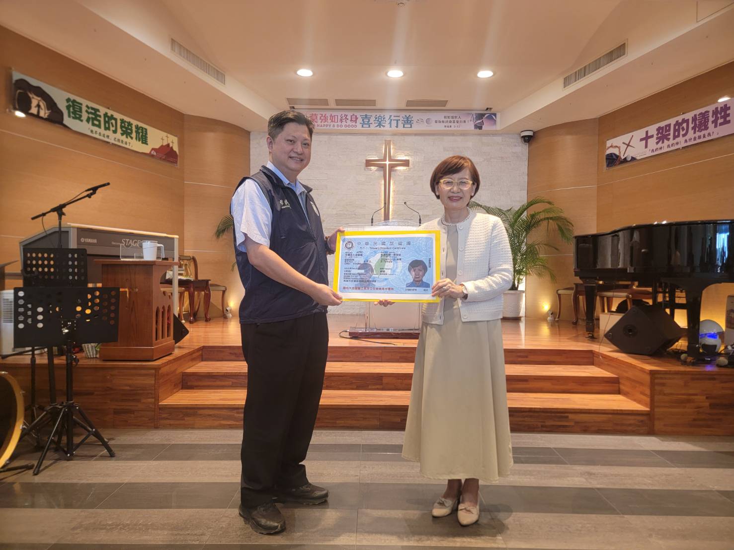 韓籍宣教師崔英玉來臺宣揚福音已38年,除致力於促進家庭關係、婚姻生活及親職教育外,她也經常前往偏遠地區關懷當地的弱勢居民。近日崔英玉獲衛生福利部審核符合「馬偕計畫」資格,移民署南區事務大隊高雄市第一服務站特別前往頒發馬偕計畫永久居留證,表揚她長期關愛臺灣人民及宗教服務的貢獻。