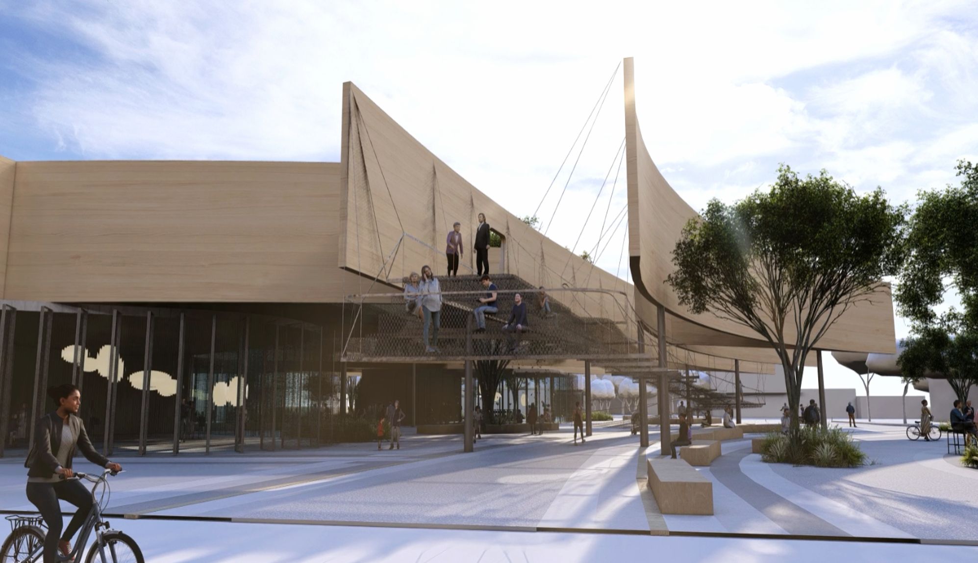 整體基地面積約2,100坪,建築面積約835坪,將規劃展演空間、餐飲店鋪與行政服務等機能。戶外空間約1,291坪,將延續既有綠帶與周邊老樹,設計環繞步道和觀景平臺,讓人們可以在不同高度散步、休息,也有足夠彈性空間舉辦市集、表演、展覽與社區活動。未來不僅是市民平常散步的地方,也將在城市博覽會期間,成為讓外地朋友認識臺東的第一站。