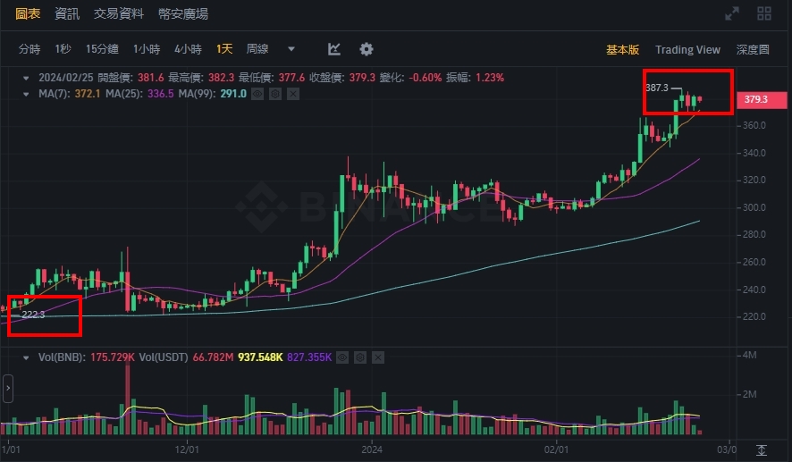。然而到目前為止,加密貨幣市場似乎並沒有受到什麼影響,更令人覺得需要注意的是,從去年2023年11月的訴訟爭議至今2024年2月25,幣安交易所的原生幣BNB反而從最低點222元美金上漲到最高387美元,漲幅高達74%。就習慣於傳統金融市場投資的一般民眾可能會完全無法理解此種市場反應,但或許也可以簡單的理解為利空出盡,而且美國政府並未禁止幣安繼續營運,也正式實現了在美國的合法化,此種現象值得投資人持續觀察。