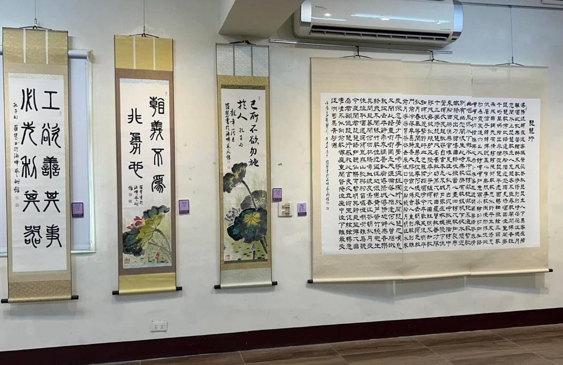 王海峰院長珍品40幅,羅慧老師佳作20幅,策展人許旗成老師說明,動靜融合畫作展覽,每一次呈現都會給參觀者不同的感受,書畫藝術的「形與勢」、透過筆墨展現出自然「動與靜」之絕美!王海峰院長執筆揮灑「動之機、靜之氣」皆融合大道自然!羅慧老師本展作品的貓兒佳作,需為動中靜觀方有得!