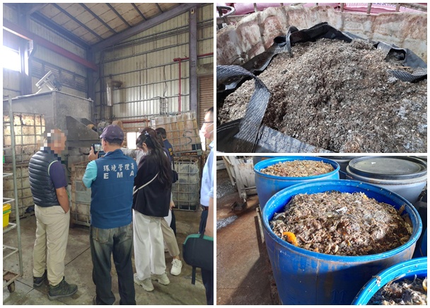 經比對及溯源,查獲彰化縣某領有廚餘及植物性廢渣再利用許可之再利用機構,收受事業及家戶廚餘,本應依再利用許可內容將廚餘經過篩選、破碎脫水後供黑水虻食用及發酵,殘餘物經震動篩分後再與麥麩混拌製成飼料添加物並妥善包裝,但實際上卻將未完成發酵之廚餘殘渣、蟲體蟲糞等殘渣混合物,委由某僅領有清除水肥或糞尿許可之清運企業社載運至臺中市大甲區農地傾倒,該農地同時也被傾倒某食品加工廠之廢蛋殼與廢蛋液。該農地鐘姓使用人未領有廢棄物處理或再利用許可,且無製成肥料之技術與設備,卻收取費用,任人傾倒、堆置前述廢棄物並隨意混合堆肥,造成惡臭及污染環境。