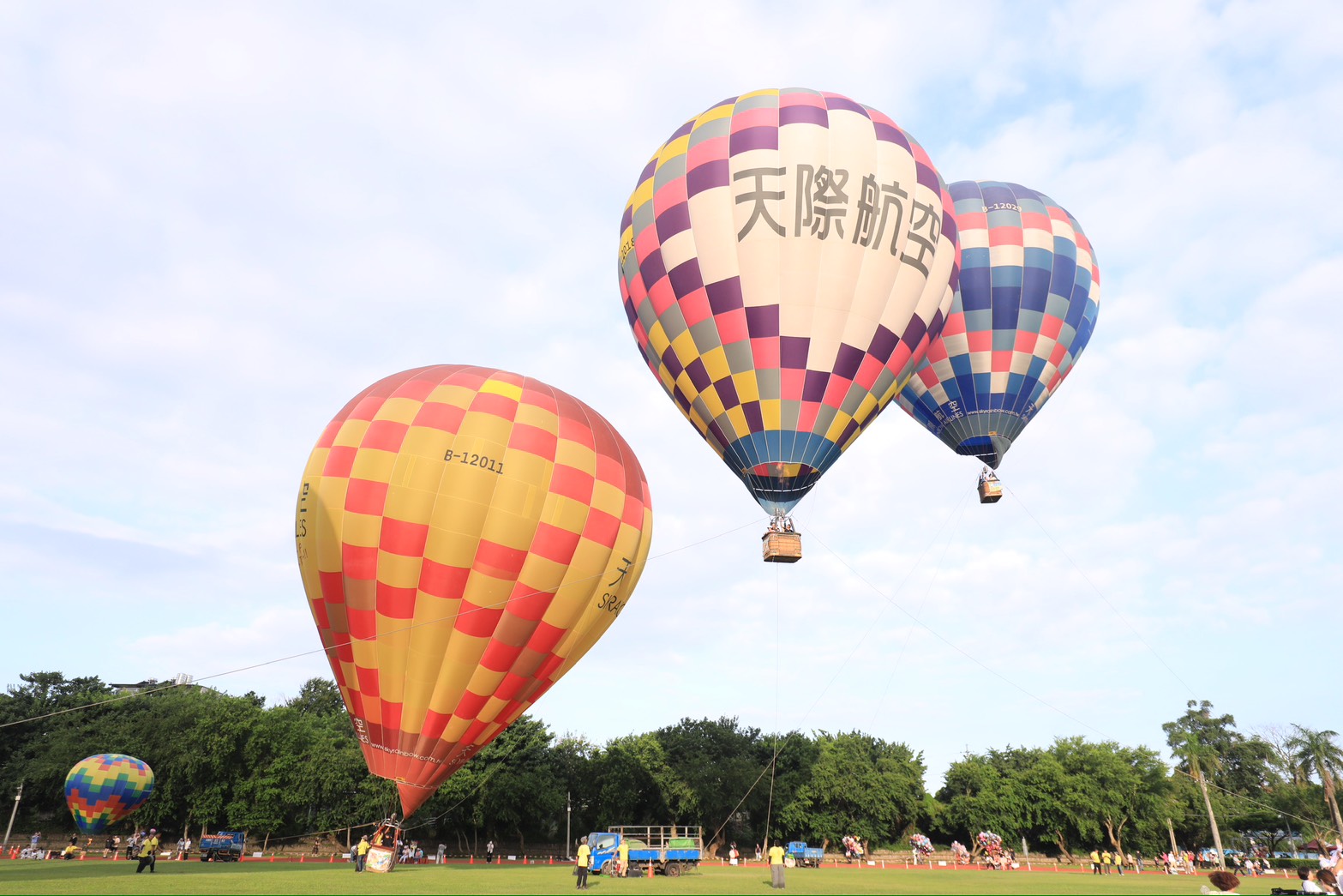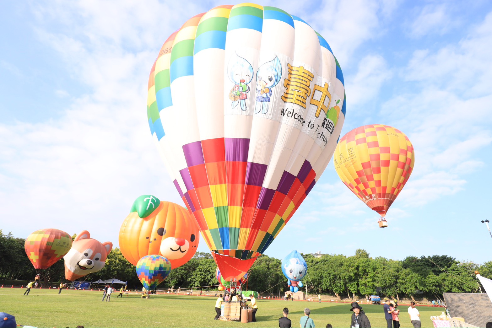 「台中石岡熱氣球嘉年華」今(29)日起至8月31日在土牛運動公園熱鬧登場,共有來自日本愛媛縣的吉祥物「蜜柑狗狗」及石岡在地吉祥物「水滴寶寶」等15顆繽紛熱氣球輪番升空,並搭配煙火秀、音樂演出與光雕噴火秀,帶來繽紛絢麗的視聽饗宴。台中市長盧秀燕今早更與舉家遷入票選全台最幸福宜居台中的模範夫妻阿Ben、徐小可率先搭乘熱氣球,並熱情邀全國民眾造訪石岡,體驗「好吃、好看、好玩、好住」的山城魅力。