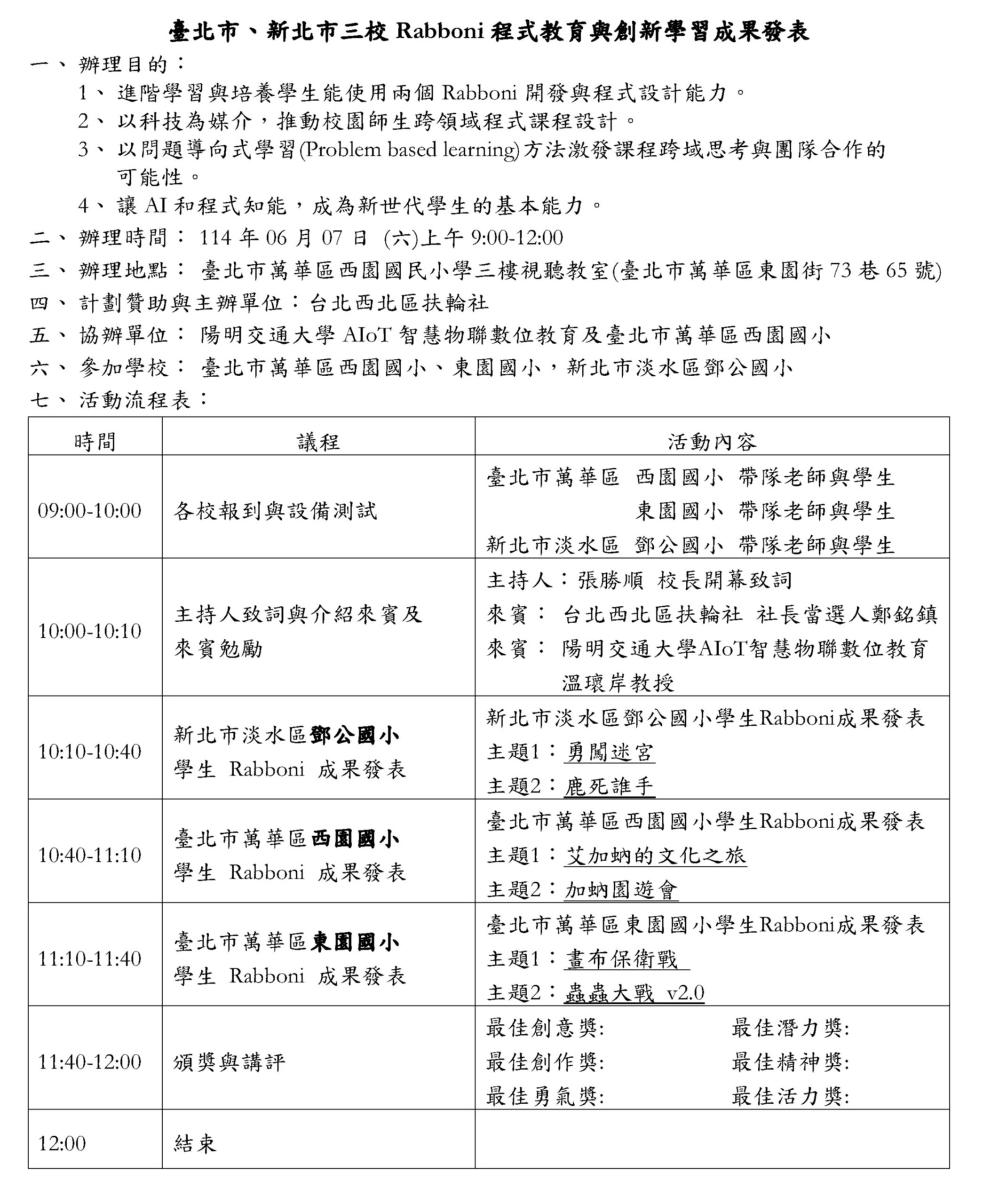 五、 協辦單位: 陽明交通大學AIoT智慧物聯數位教育及臺北市萬華區西園國小