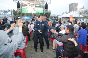 「2026 WBC世界棒球經典賽」自昨(5)日起至3月8日在日本東京巨蛋開打,台南市政府特別舉辦應援轉播活動,今(6)日晚間於永華市政中心西側廣場現場轉播台灣迎戰日本的精彩賽事,市長黃偉哲親臨與民眾一起為台灣加油,現場發送700份補給點心給到場支持的球迷,希望透過戶外大型螢幕轉播,讓無法現場觀賽的民眾為台灣棒球英雄強力打氣,應援氣氛非常熱絡,市議員沈震東也到場共襄盛舉。