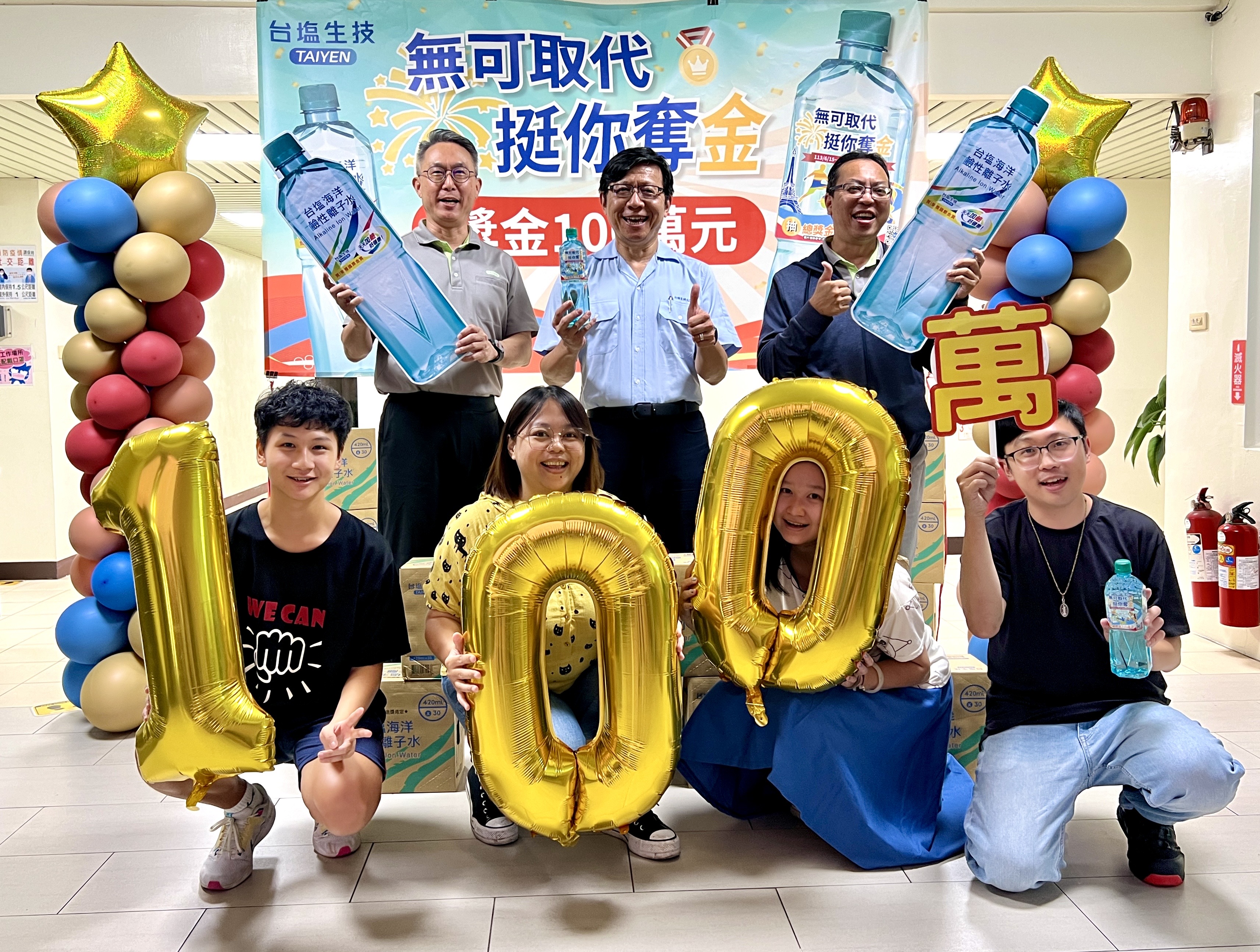 台塩海洋鹼性離子水「無可取代,挺你奪金」活動壓軸頭獎100萬元現金開獎啦!9日由臺鹽公司總經理陳世輝抽出幸運粉絲,恭喜由來自高雄市的許先生,獨得100萬元現金,幸運將年度最大獎帶回家。本次活動共送出5萬份總價逾310萬元獎項,感謝消費者的熱情參與,也恭喜所有中獎的幸運粉絲,請大家持續支持台塩海洋鹼性離子水。