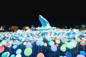 「一定成功」以元宵點燈、媽祖祈福做為主題燈意象,用擬真俏皮的海洋生物呈現,透過左右護法千里眼、順風耳在兩側護航,無論是個人學習、事業、感情、家庭等各項願景目標,都祈求新的一年福泰安康,一切願望都能如願、一定成功!
