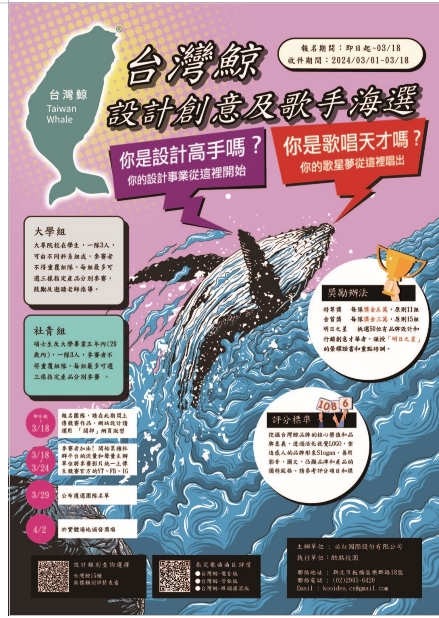 活動海報:台灣鯨創意新秀海選正在廣徵設計行銷和歌唱人才,本圖片由主辦單位提供