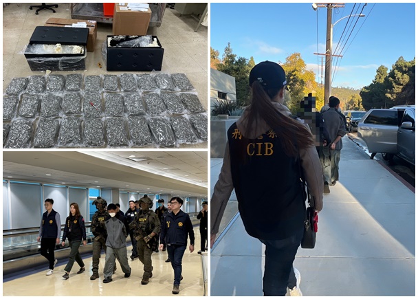 本案鎖定犯嫌疑為我國運毒車手並向上擴大溯源,境內計拘提運毒車手等7人,境外鍾姓犯嫌(竹聯幫明○會身分註記)位於美國,承辦檢察官發布通緝書。刑事局國際刑警科長期與美國執法機關情資交流,歷經多次協調,美方同意我方赴美針對上揭鍾姓主嫌同步進行緝捕行動,由刑事警察局駐美西警察聯絡官及國際刑警科偵一隊幹員於洛杉磯共同查獲鍾嫌到案,後經美方驅逐鍾嫌離境於洛杉磯機場交接人犯後,由我方接手押解返臺,鍾嫌依涉犯違反「組織犯罪防制條例」、「毒品危害防制條例」等罪,後續解送檢方歸案續偵。