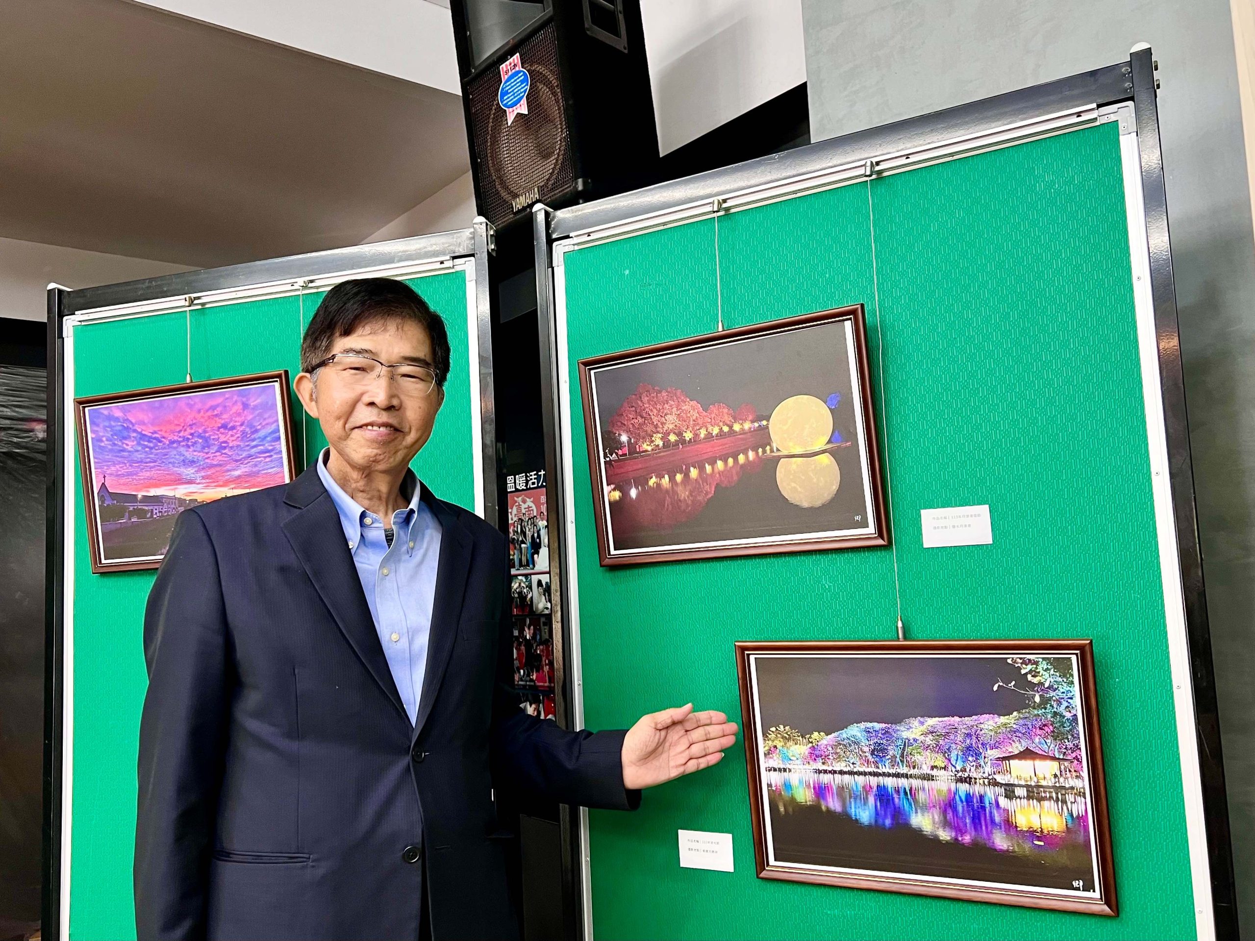 秘書處指出,這次展出攝影作品中,「鳳凰花與火車」是一幅極具台灣在地特色的攝影作品。畫面上方以盛開的鳳凰花作為自然框架,鮮豔的紅色花朵與藍天形成鮮明對比。下方則是奔馳的台鐵列車,橘白相間的車身與綠色植被、藍天相互輝映。這張照片成功捕捉了動與靜的完美平衡 – 靜態的花朵與動態的列車,共同演繹出一幅充滿生命力的畫面。第二張「藍天白雲與稻黃」是一張展現台灣農村風光的精彩作品。畫面分兩部分,上半部是壯觀的積雲與蔚藍天空,下半部則是金黃色的稻田。遠處的綠色樹林作為自然分隔線,將天地分割得恰到好處。構圖上採用了三分法的原則,雲朵的層次分明與稻田的金黃色調形成強烈的視覺對比。這張照片成功展現了台灣農村的自然之美,尤其是那種豐收在即的飽滿感。