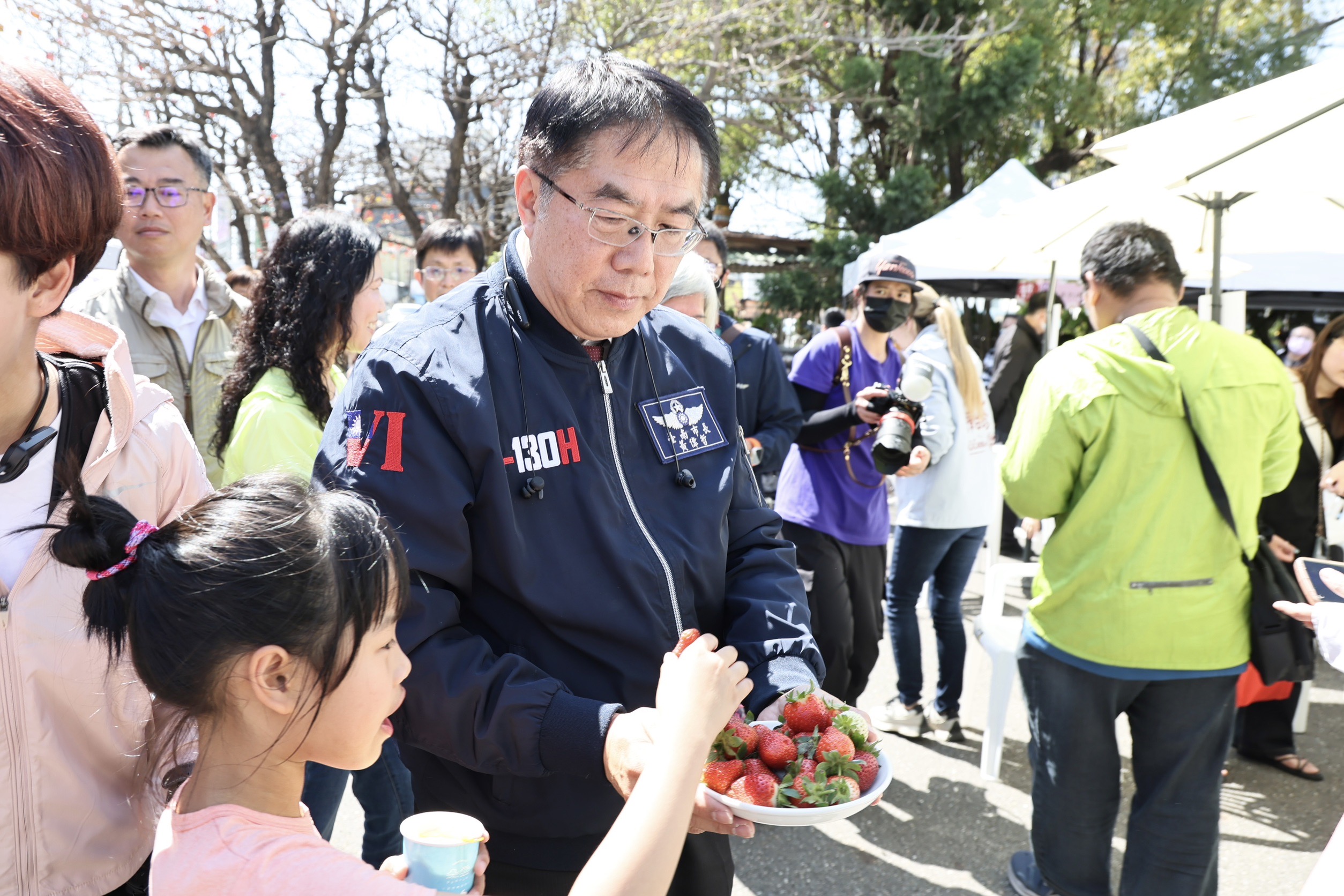 為推廣善化草莓產業,善化區公所今(28)日於善化啤酒觀光工廠辦理「粉紅泡泡季」-114 年善化區草莓季產業文化活動,邀約優質市集品牌商展售各式草莓特色甜點、輕食及飲品,更邀請廣受小朋友喜愛的 YOYO 家族「草莓姐姐」一起歡樂帶動跳,熱鬧不間斷的舞台節目及周邊活動,讓現場湧現滿滿人潮。市長黃偉哲也驚喜現身,與現場大小朋友開心互動。