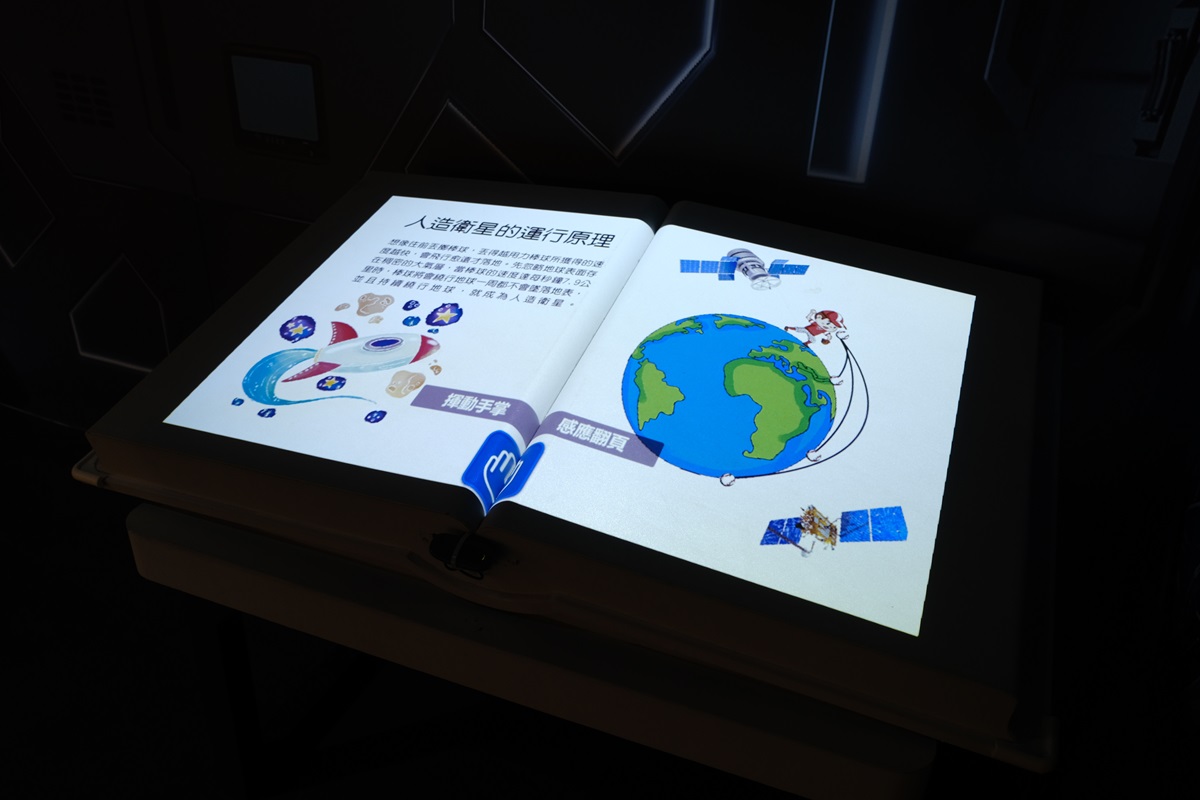 探測基地-國家太空中心本次展出衛星科普小常識互動裝置,參觀者將浸在仿真的太空艙前,一頁一頁地翻閱太空科普投影書,內含豐富的太空科普小常識,例如全世界第一枚人造衛星、人造衛星的運行原理、人造衛星的速度、第一位太空人等,是今年暑假的最佳充電站。另外設有太空垃圾追捕手及弓箭手的互動遊戲,由於目前太空中的垃圾問題越來越嚴重,身為地球人的我們有責任去清除及解決,拿起我們的網子、拉起我們的弓箭,出發吧!